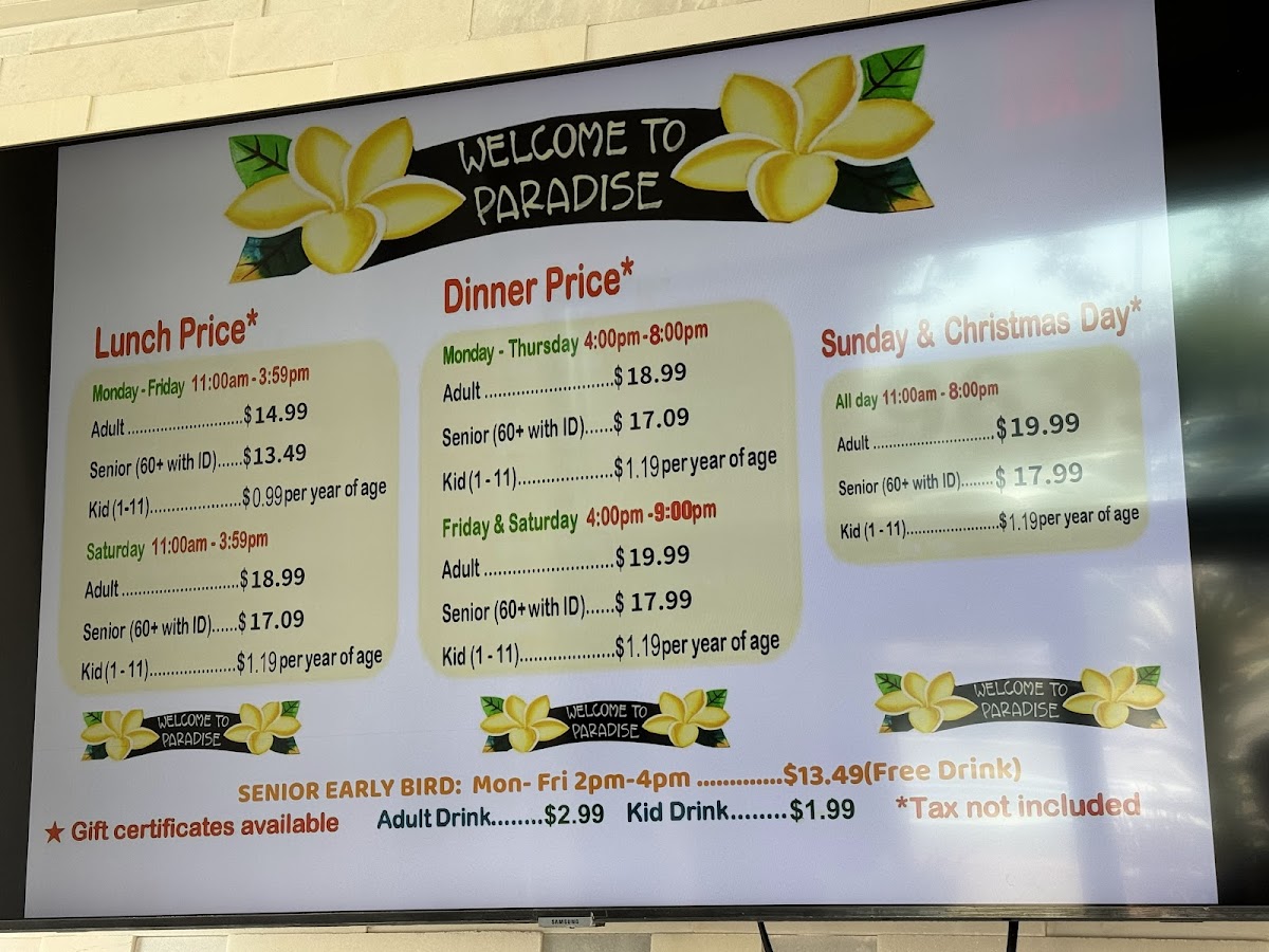 Paradise Buffet - CA 92841 Menu